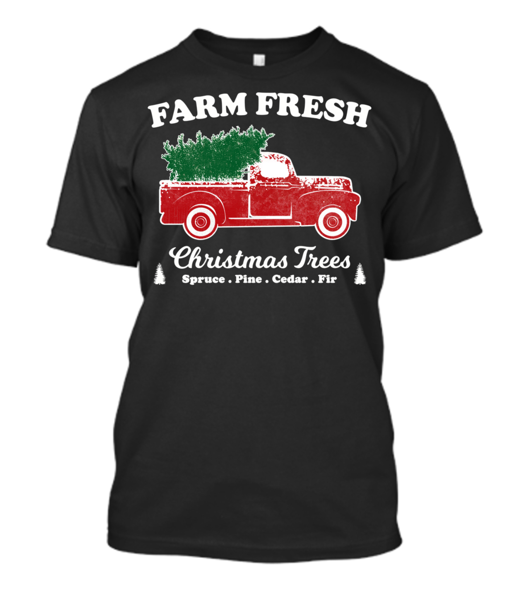 Farm Fresh Christmas Trees Classic Red Truck Spruce Pine Cedar Fir T-Shirt