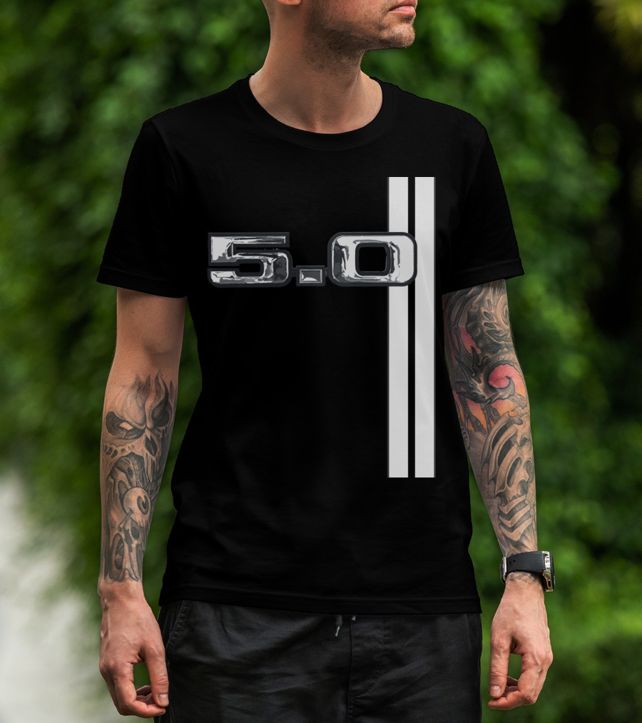 The 5.0 Racing Stripe Classic Car T-shirt is designed for everyday wear and a consistent fit. Fabric is pre-shrunk ring-spun cotton with durable stitching. See the size chart below for exact measurements.
