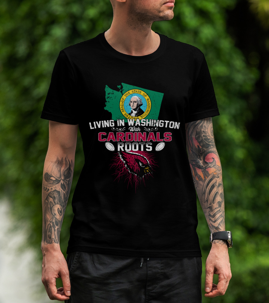 Living In Washington With Cardinals Roots Football Seal State Bird Map T-Shirt