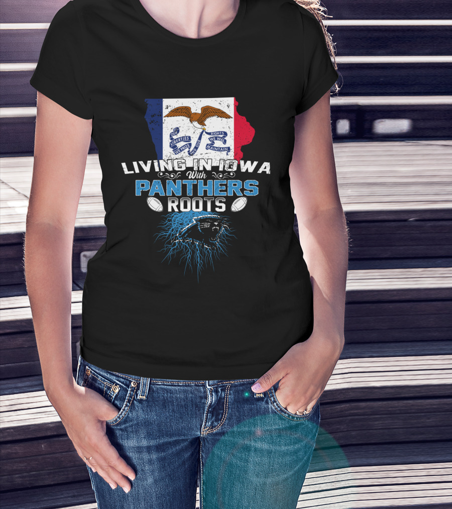 Living In Iowa With Panthers Roots Iowa Flag T-Shirt