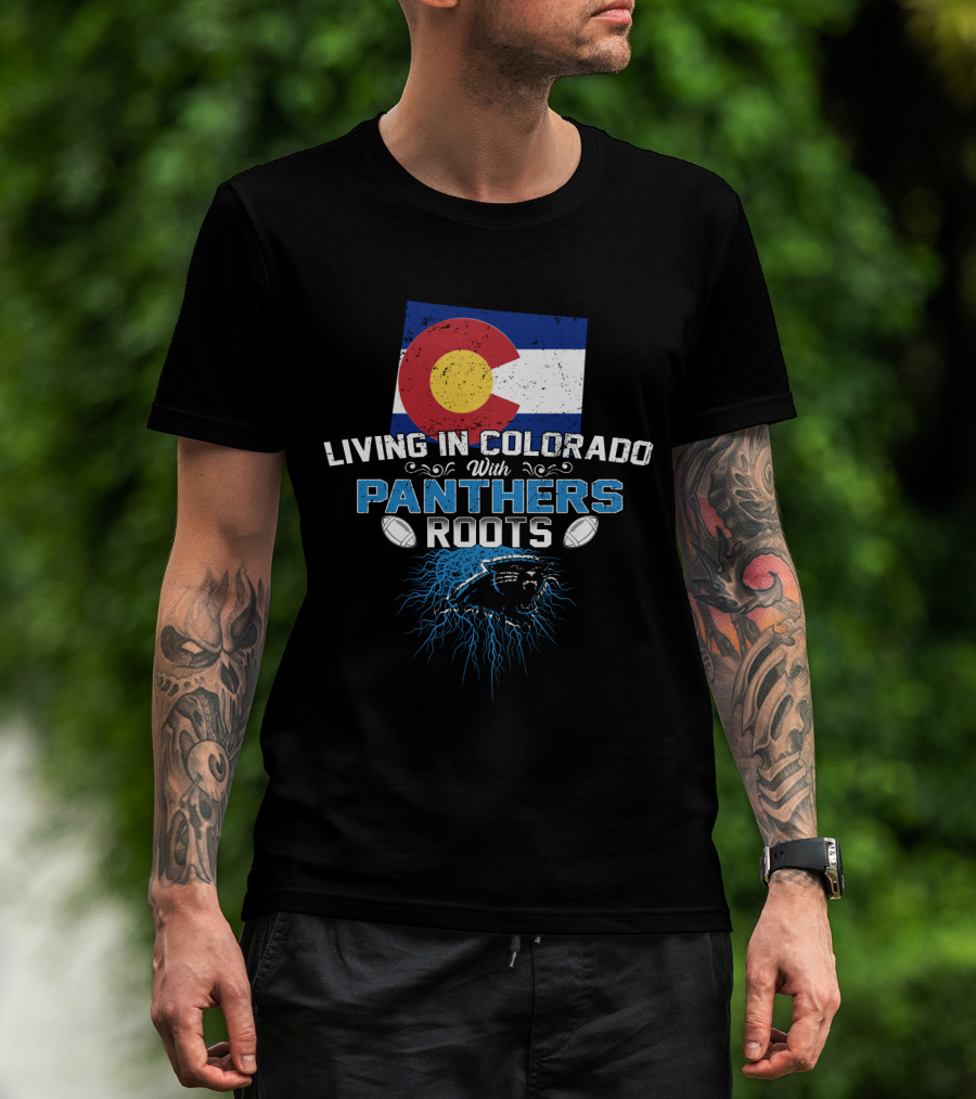 Living In Colorado With Panthers Roots Colorado Flag And Panther T-Shirt