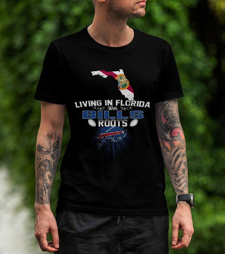 Living In Florida With Buffalo Bills Football Roots And Florida State Map T-Shirt