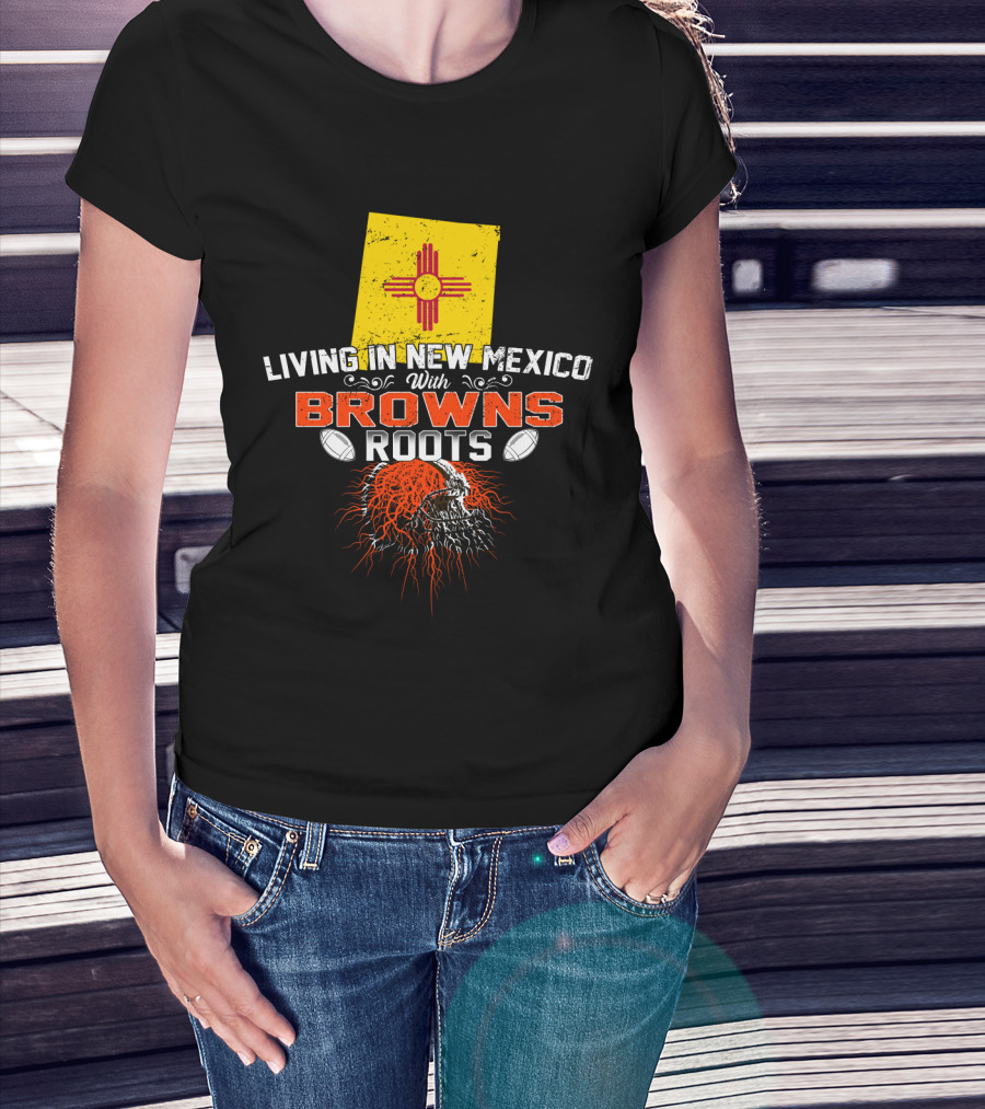 Living In New Mexico With Browns Roots Football Helmet Flag T-Shirt