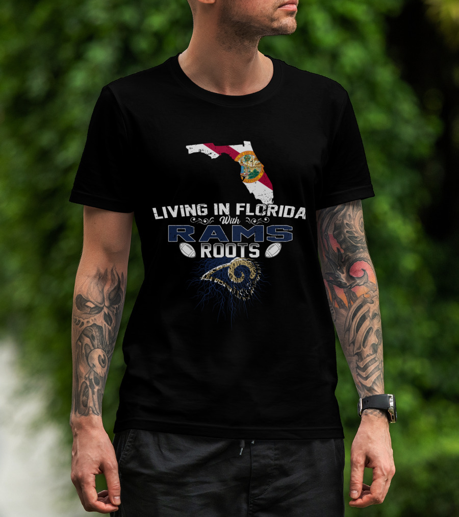 Living In Florida With Rams Roots Football Heritage Florida Map T-Shirt