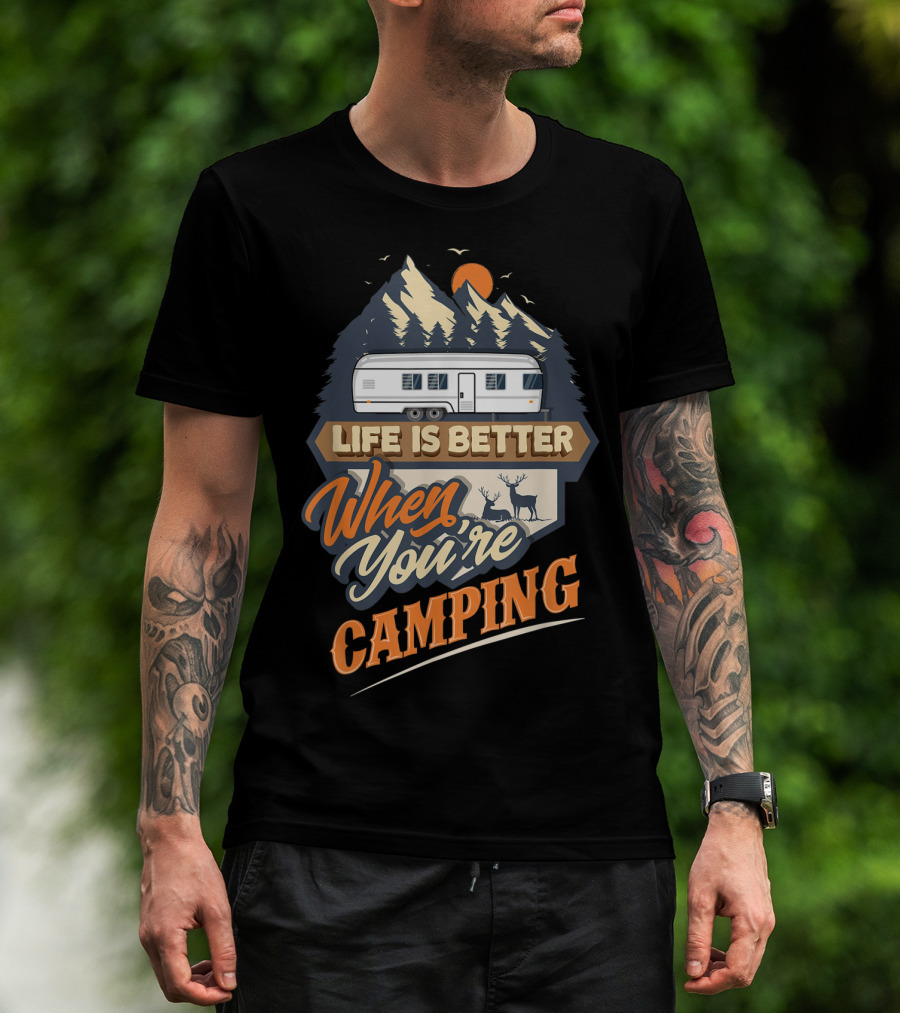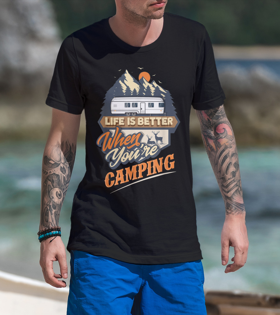 Life Is Better When You're Camping Classic Travel Trailer Scene T-Shirt