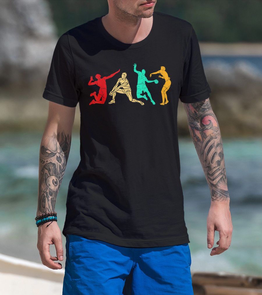 Colorful Vintage Volleyball Players In Action T-Shirt