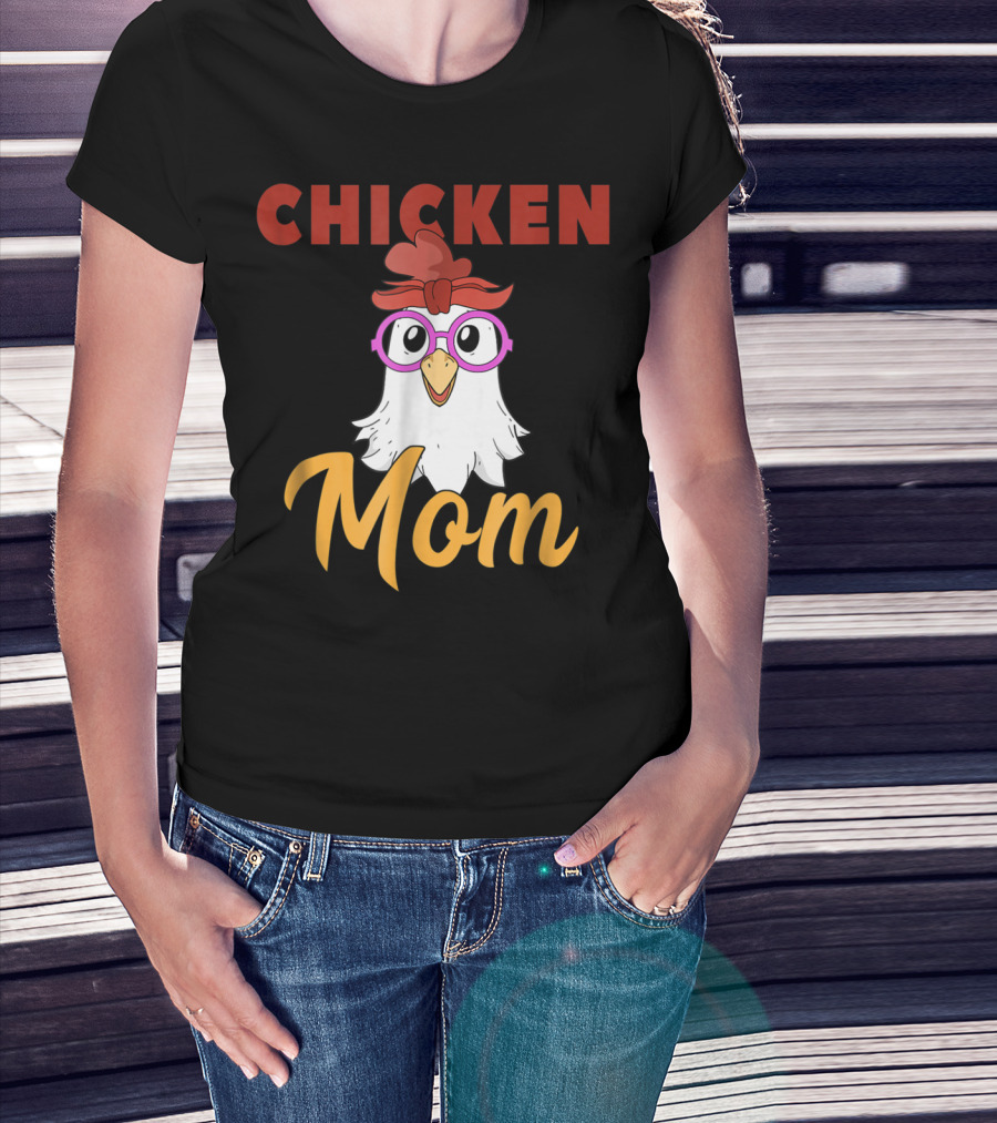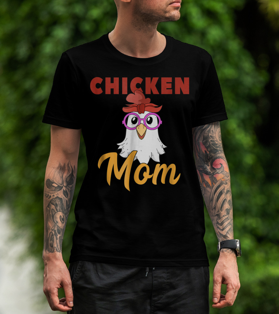 Chicken Mom For Mamas2 Funny Hen Illustration With Glasses T-Shirt