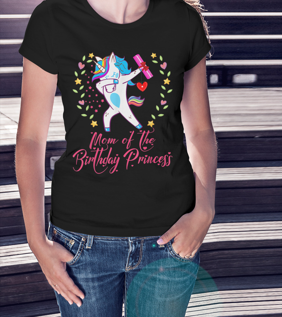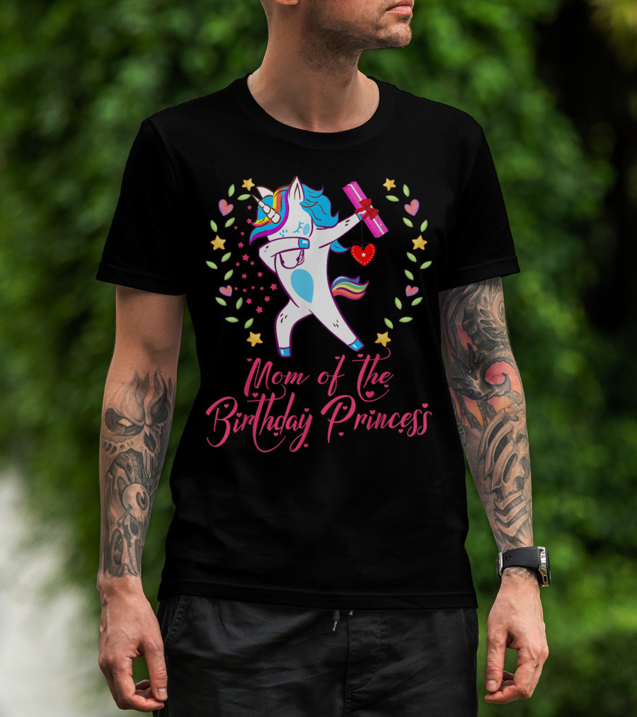 Mom Of The Birthday Princess Unicorn Stars Hearts Rainbow T-Shirt