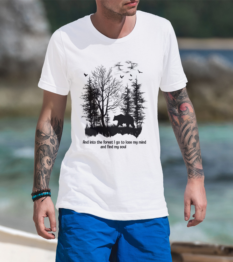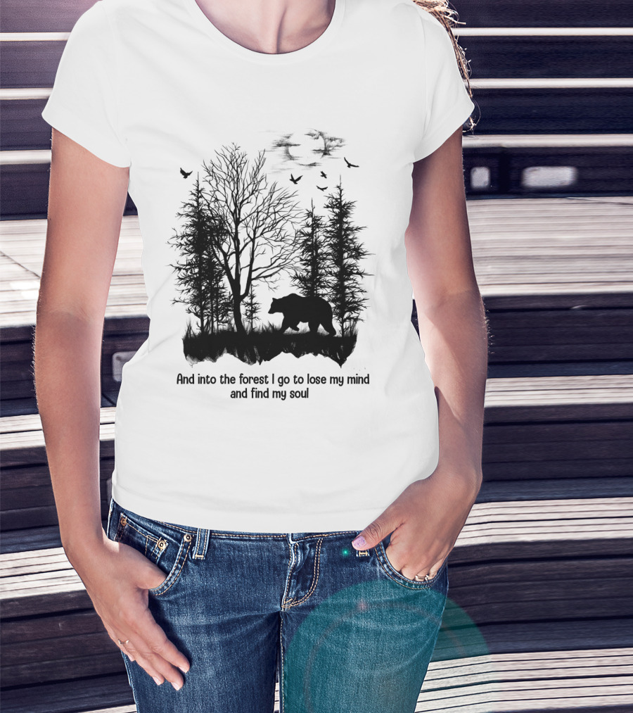 And Into The Forest I Go To Lose My Mind And Find My Soul Bear Trees Birds T-Shirt