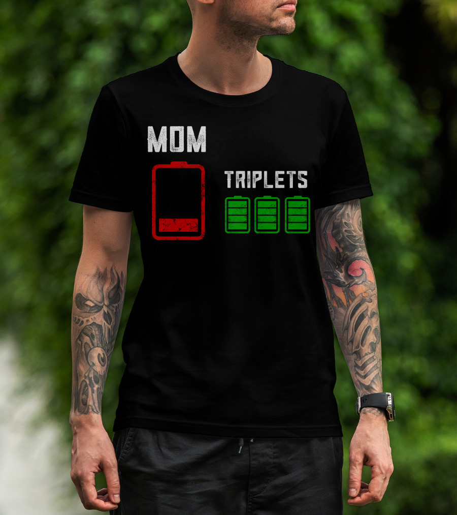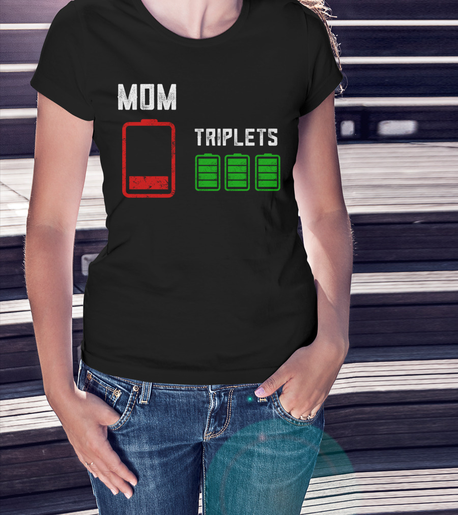 Mom Battery Depleted Triplets Full Charged T-Shirt