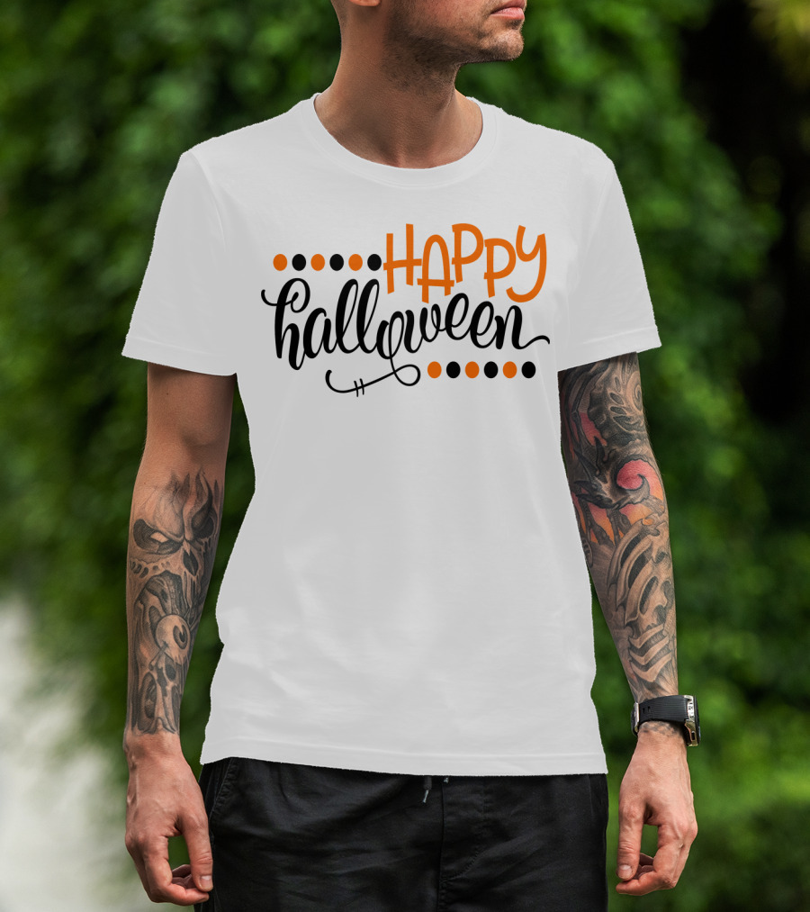 The Happy Halloween Script Mom Grandma6 T-shirt is designed for everyday wear and a consistent fit. Fabric is pre-shrunk ring-spun cotton with durable stitching. See the size chart below for exact measurements.