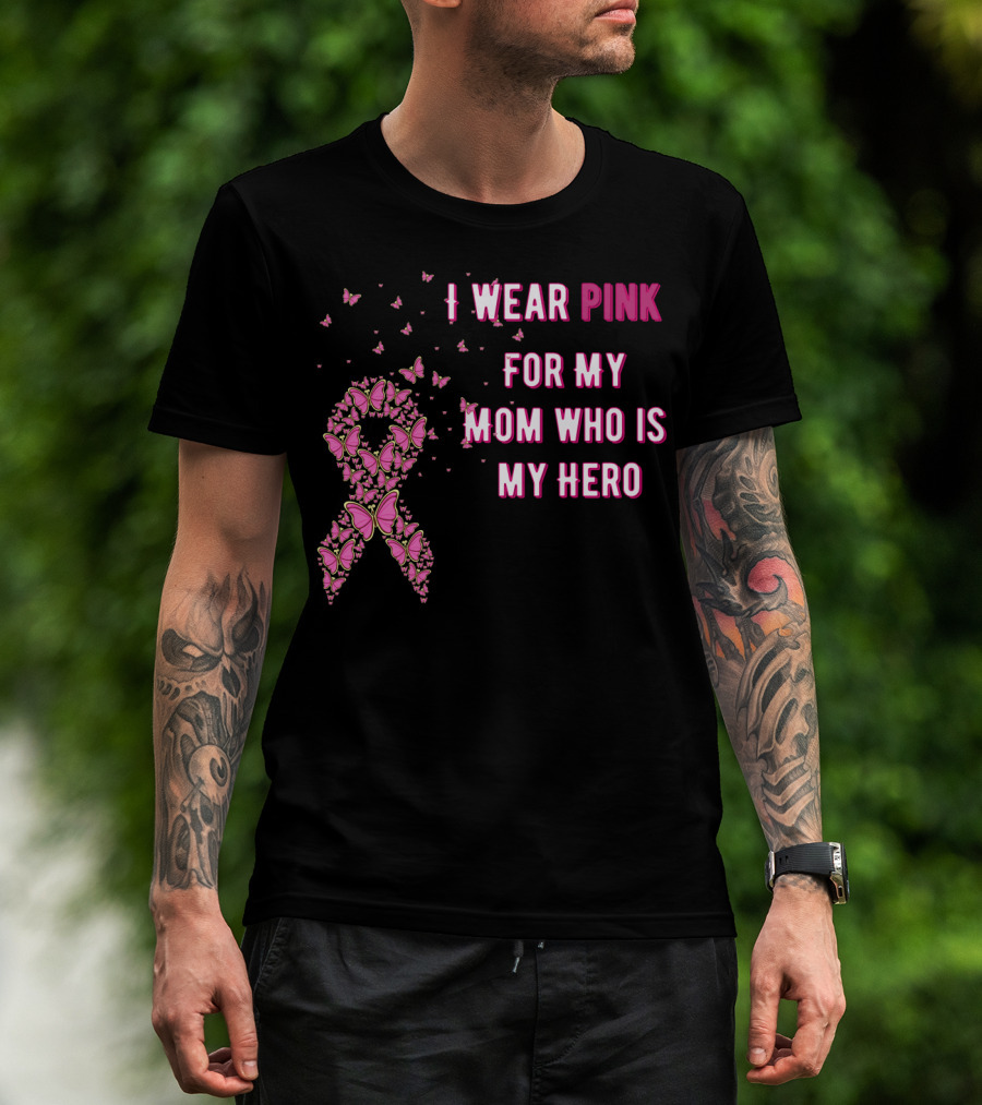 I Wear Pink For My Mom Who Is My Hero Breast Cancer Awareness T-Shirt