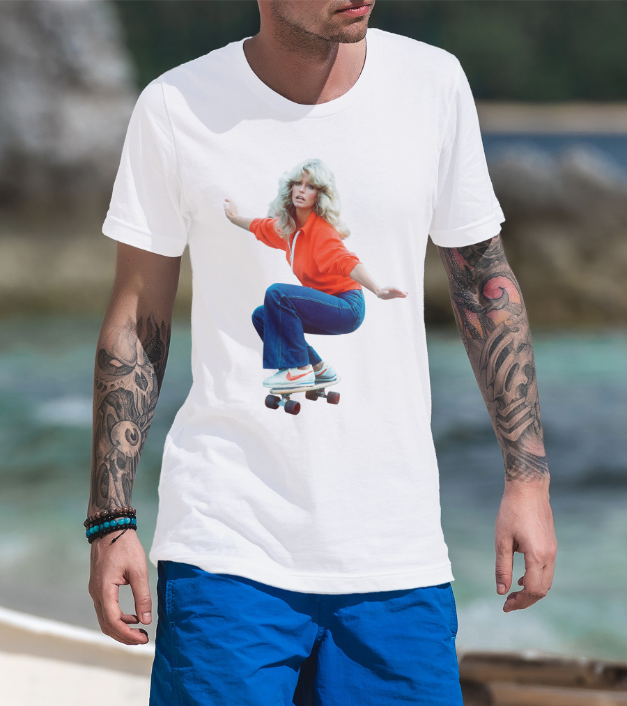 Farrah Fawcett Iconic Skateboarding Pose In Red Sweater And Sneakers T-Shirt