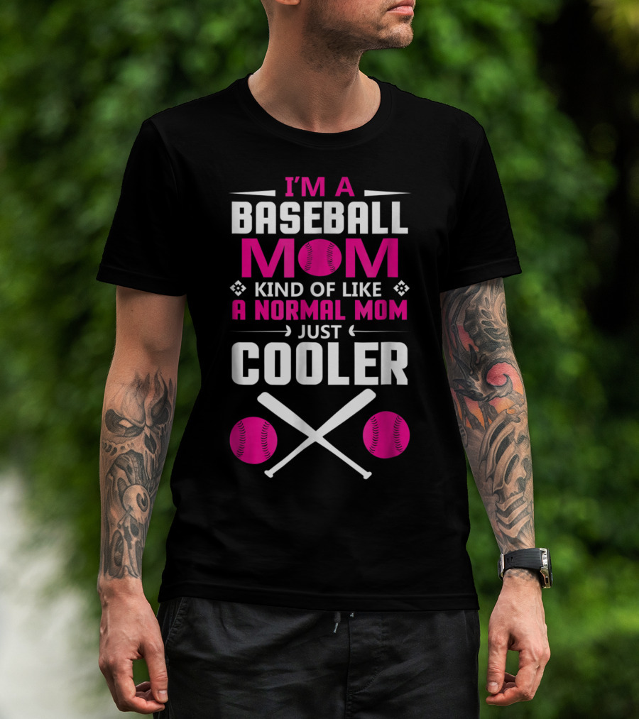 I'M A Baseball Mom Kind Of Like A Normal Mom Just Cooler Pink Baseballs And Bats T-Shirt