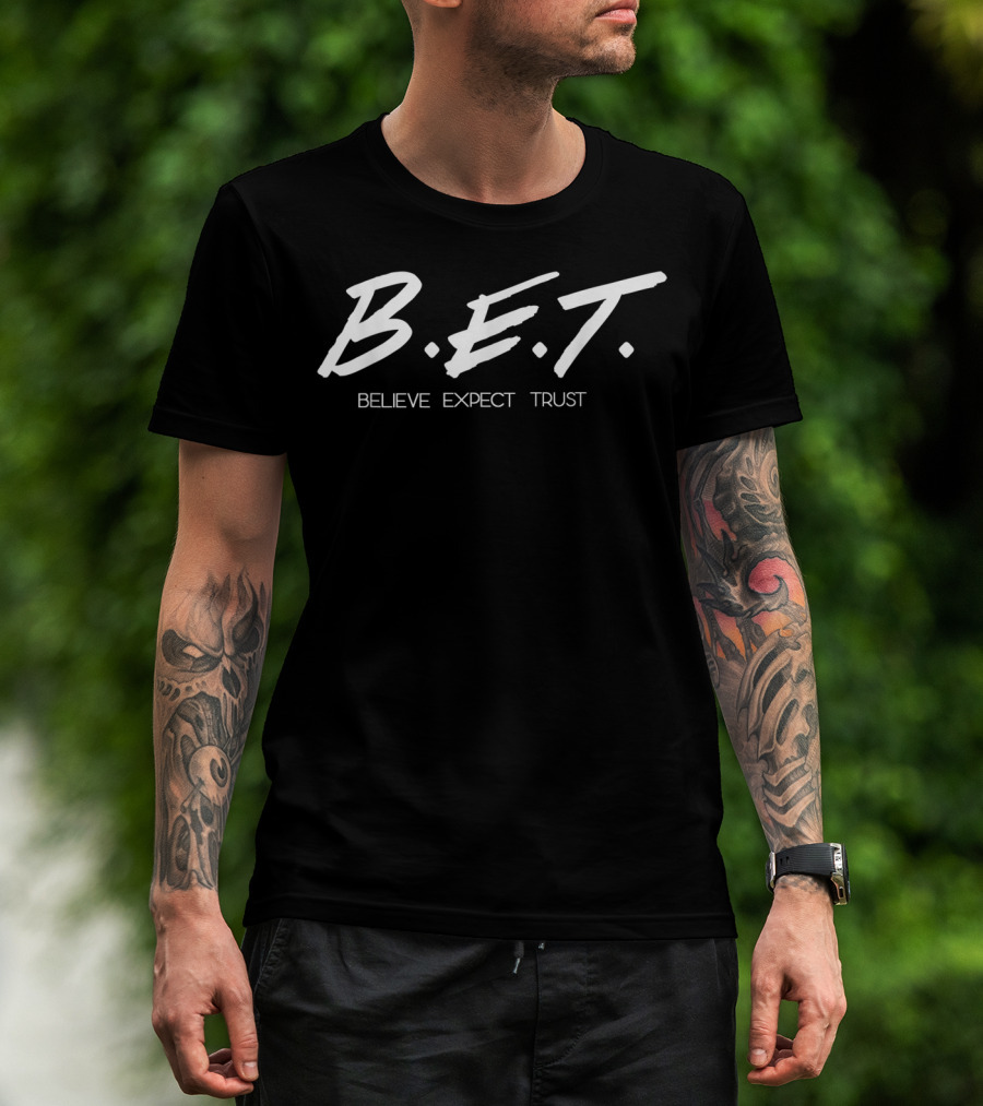 The B.E.T. Believe Expect Trust T-shirt is designed for everyday wear and a consistent fit. Fabric is pre-shrunk ring-spun cotton with durable stitching. See the size chart below for exact measurements.