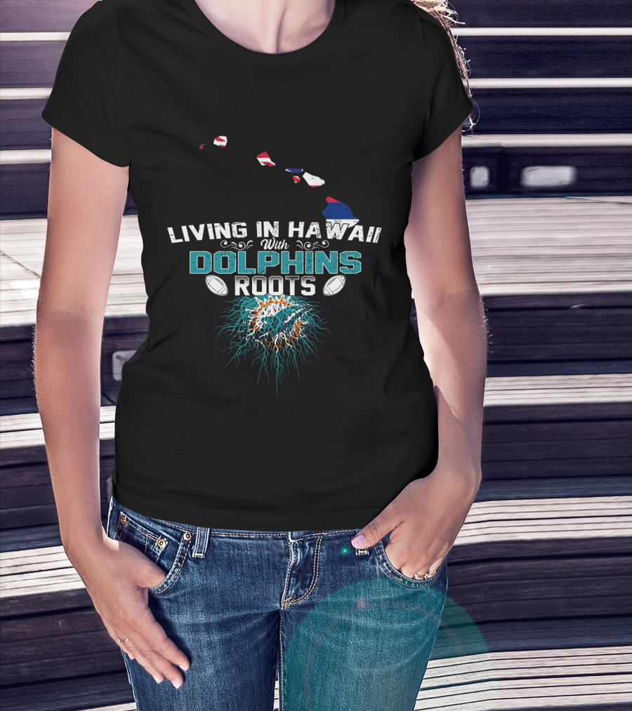Living In Hawaii With Dolphins Roots Football Pride T-Shirt