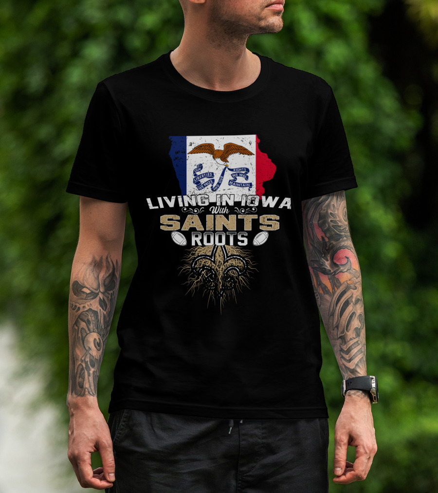 Living In Iowa With Saints Roots Fleur-de-Lis Football T-Shirt