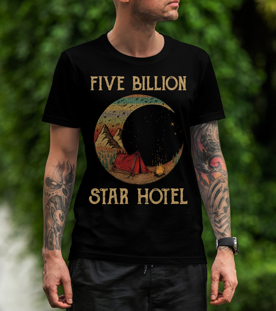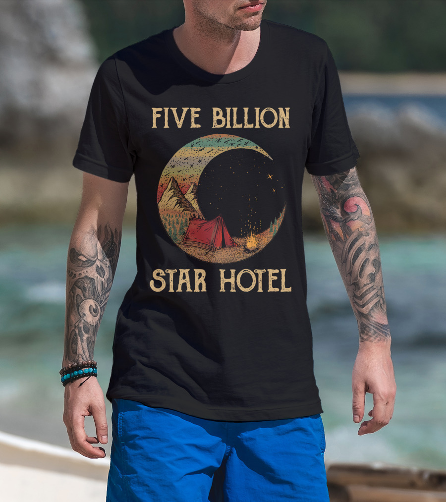 Five Billion Star Hotel Camping Tent Under Night Sky With Stars And Mountains T-Shirt