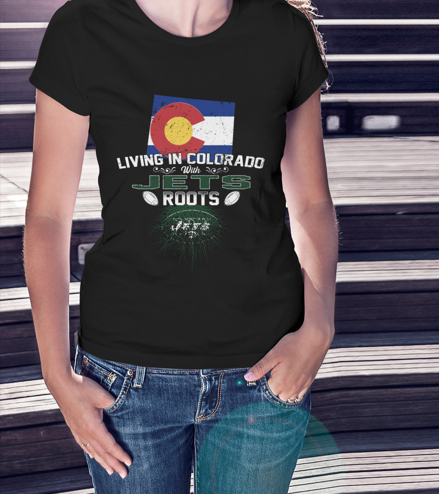 Living In Colorado With New York Jets Roots Flag Football T-Shirt