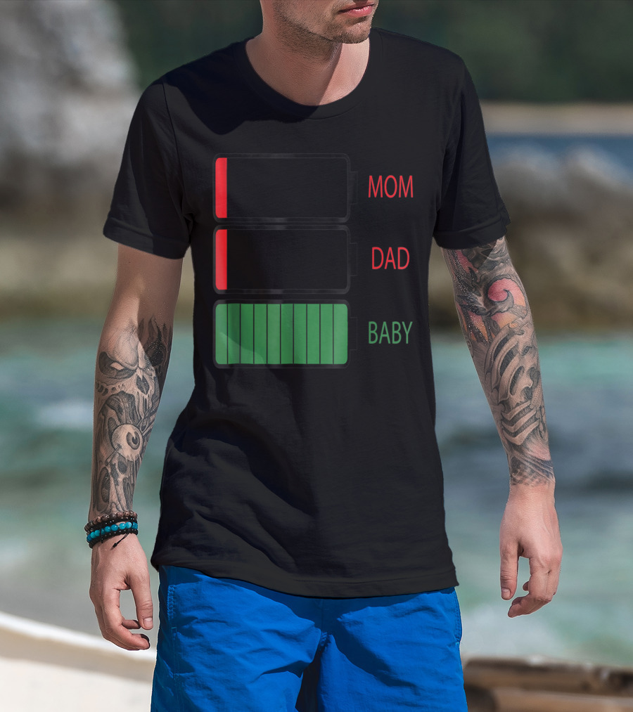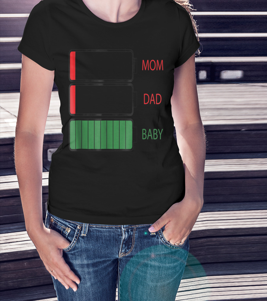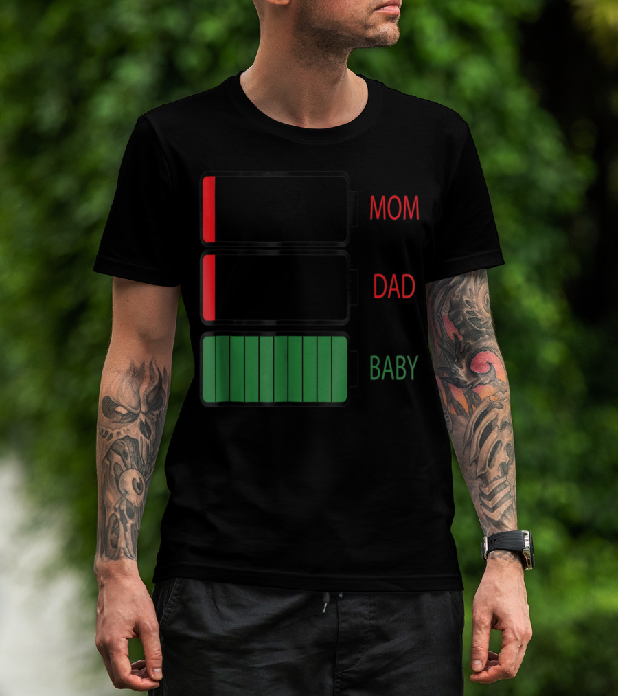 Mom Dad Baby Low Battery Humor Family Energy Levels T-Shirt