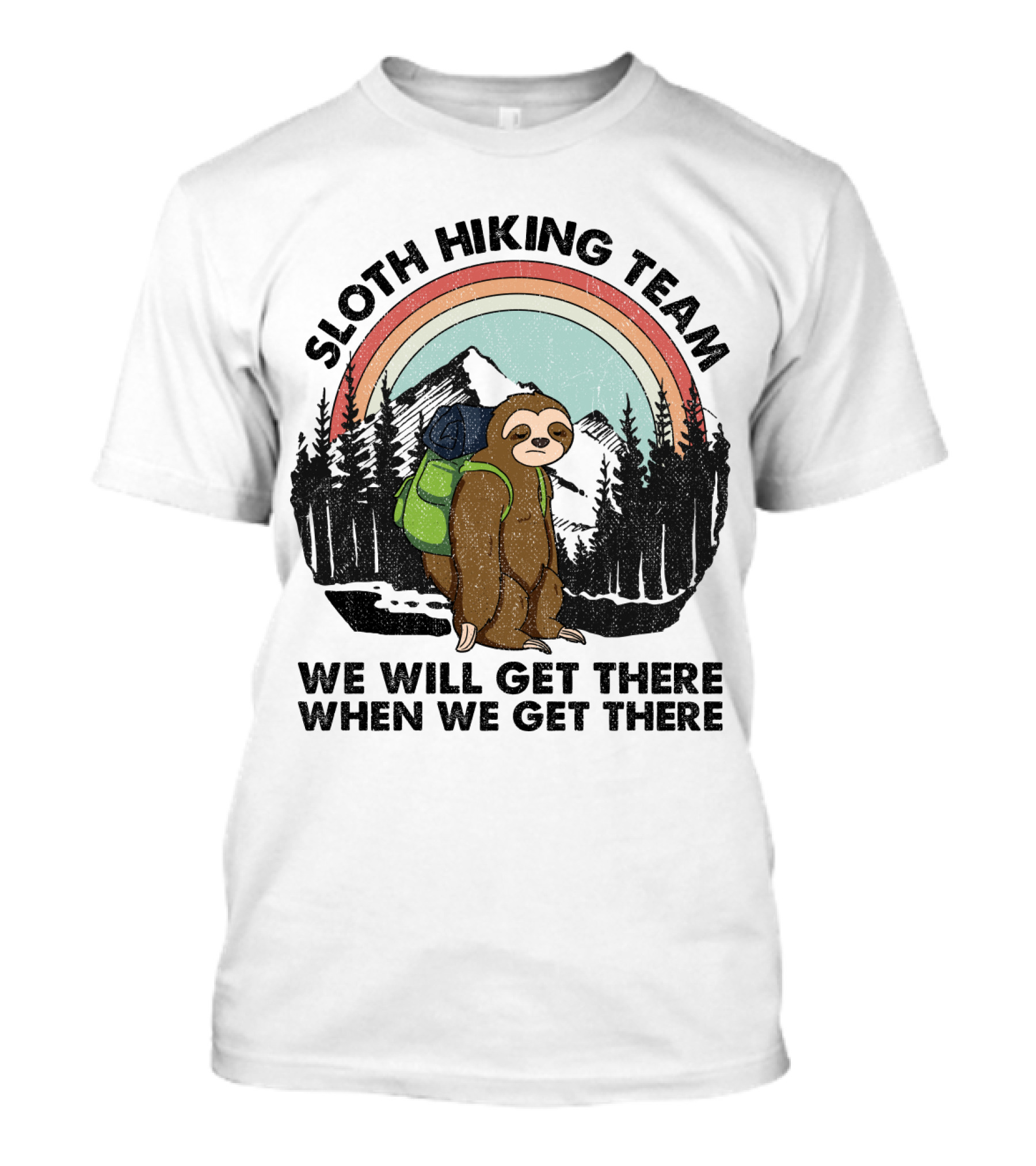 The Sloth Hiking Team We Will Get There When We Get There Rainbow Mountains T-shirt is designed for everyday wear and a consistent fit. Fabric is pre-shrunk ring-spun cotton with durable stitching. See the size chart below for exact measurements.