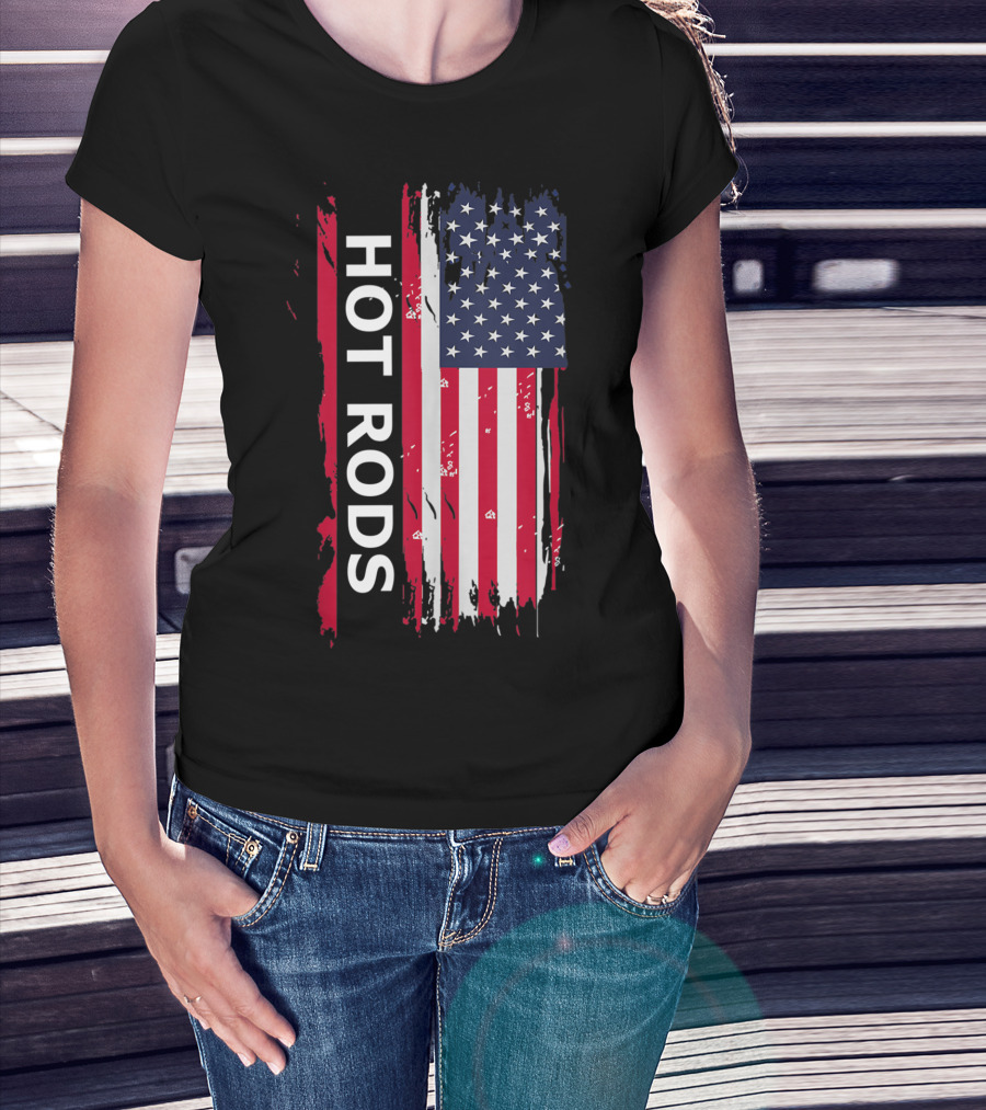 HOT RODS American Flag Classic Muscle Cars T-Shirt