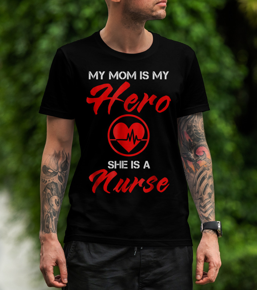 My Mom Is My Hero She Is A Nurse Heartbeat T-Shirt