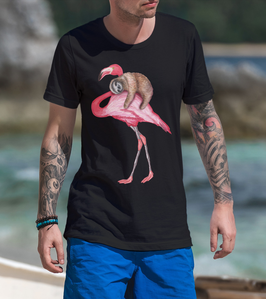 The Sloth Riding Flamingo T-shirt is designed for everyday wear and a consistent fit. Fabric is pre-shrunk ring-spun cotton with durable stitching. See the size chart below for exact measurements.