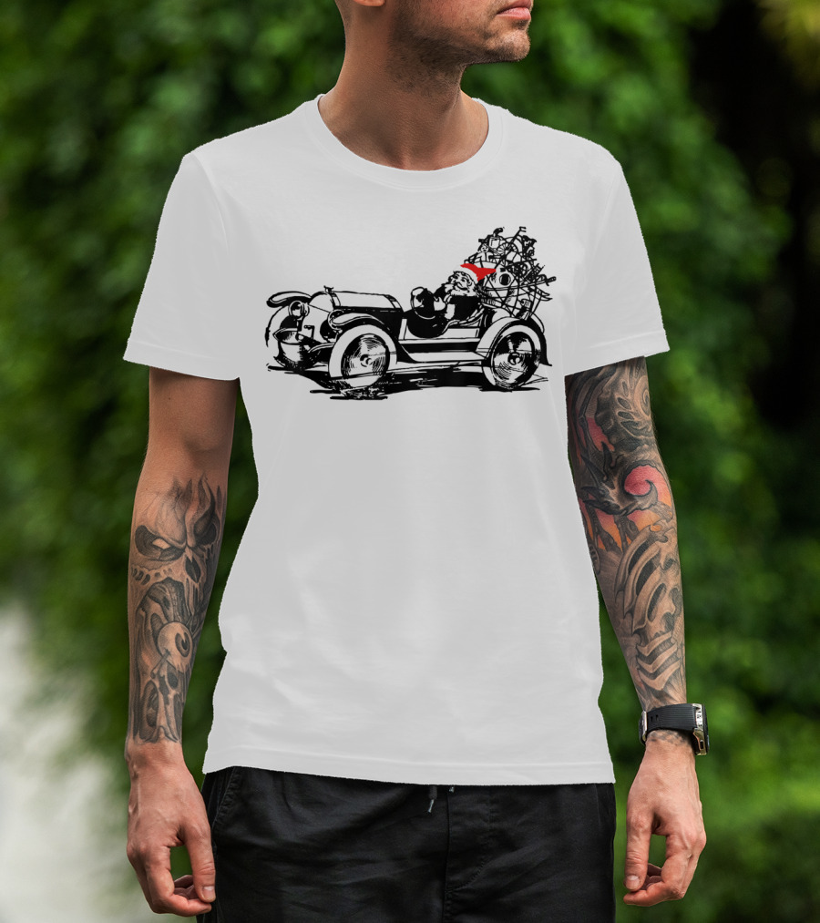 Santa Driving Vintage Car With Christmas Tree Load T-Shirt