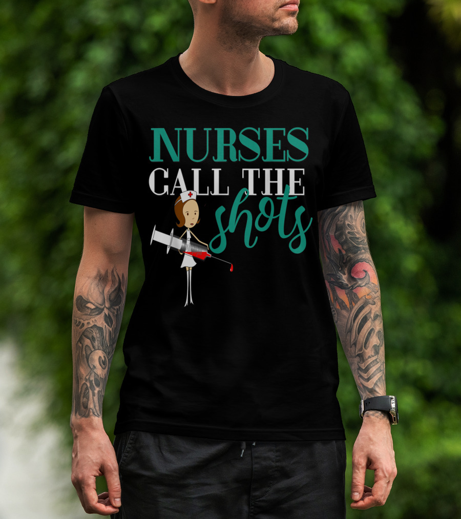 Nurses Call The Shots Nurse RN Mom Wife Green5 Cartoon Nurse With Syringe T-Shirt