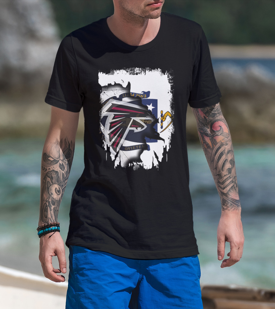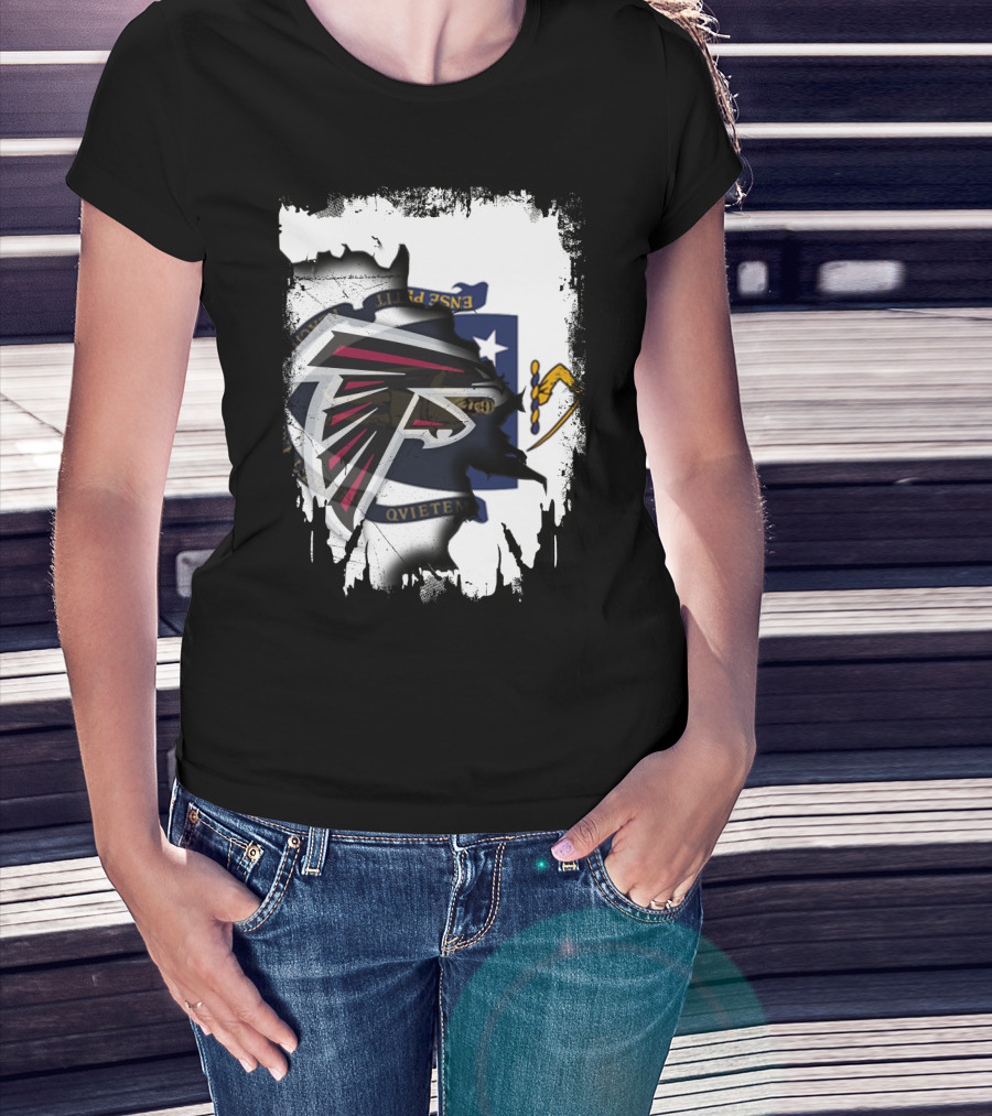 Massachusetts State Flag And Atlanta Falcons Logo Together T-Shirt