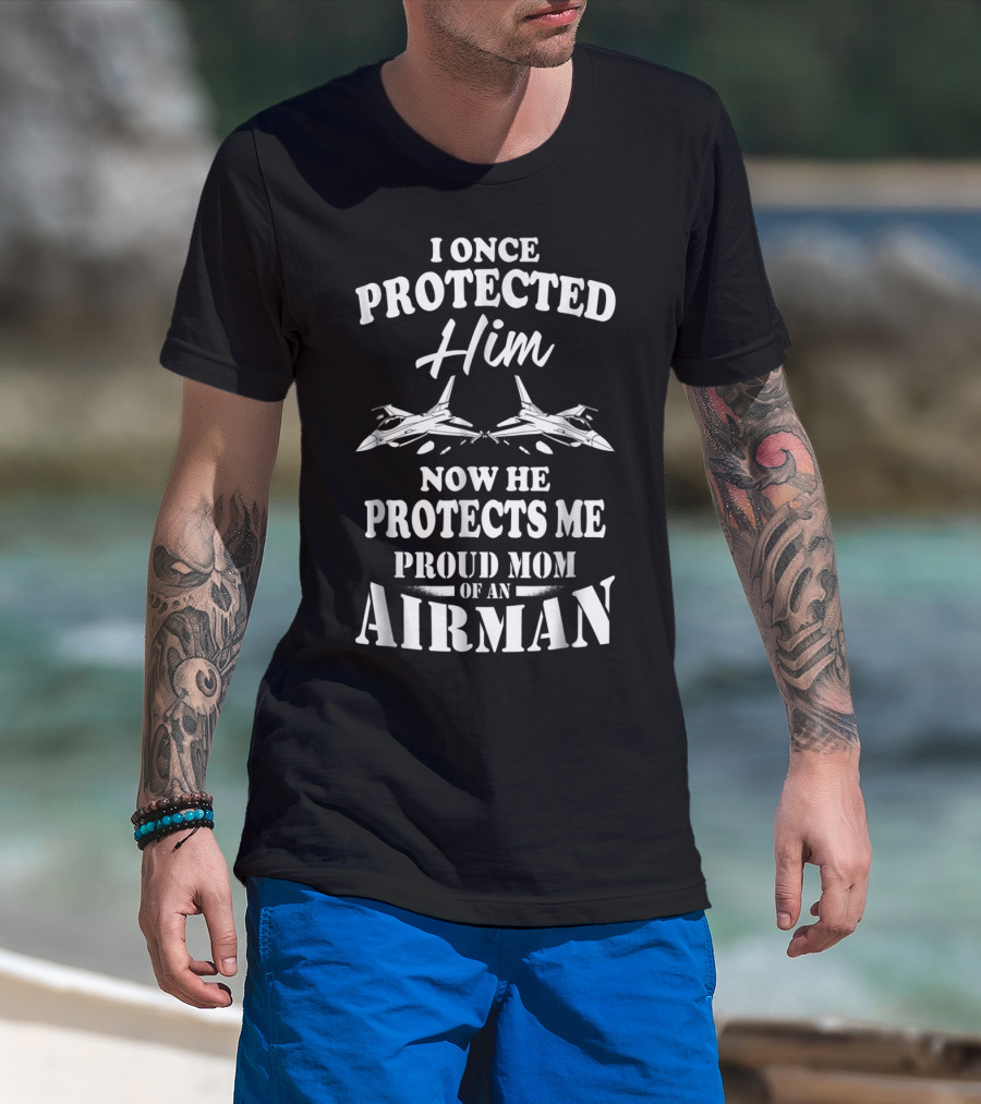 I Once Protected Him Now He Protects Me Proud Mom Of An Airman T-Shirt