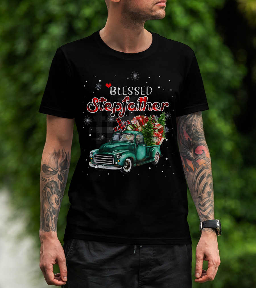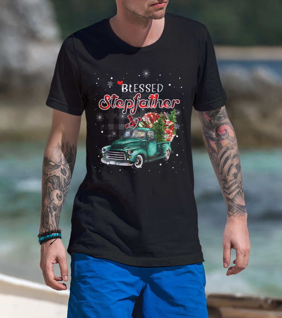 Blessed Stepfather Vintage Truck Christmas Plaid Snowflakes T-Shirt