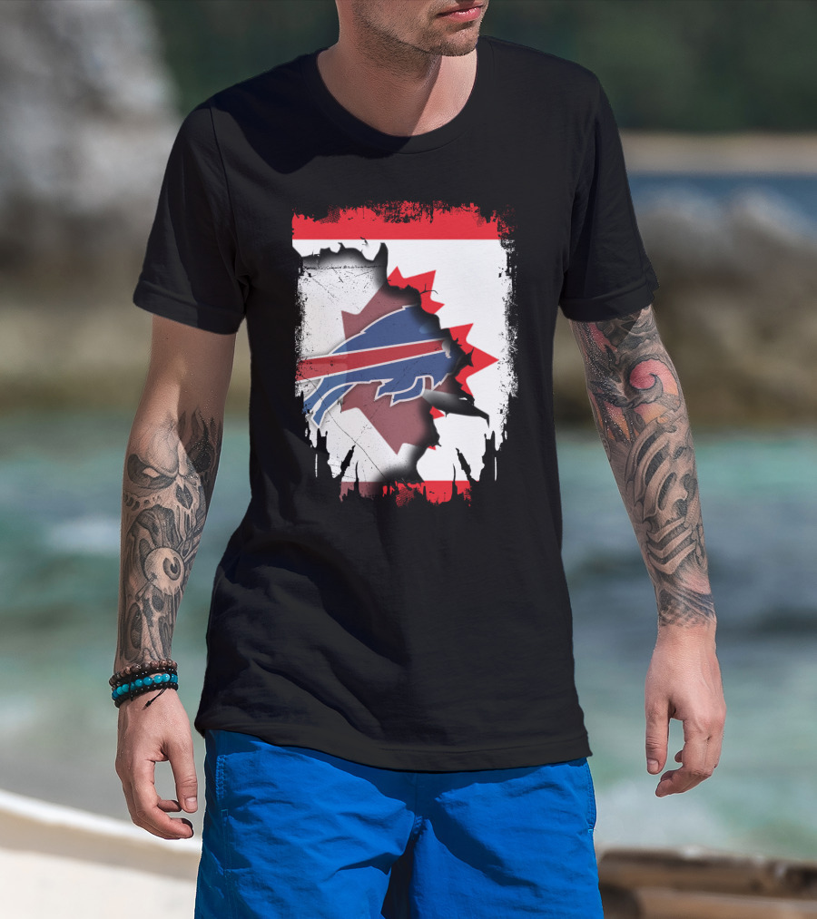 Together Canada With Bills Buffalo Logo And Maple Leaf Banner T-Shirt