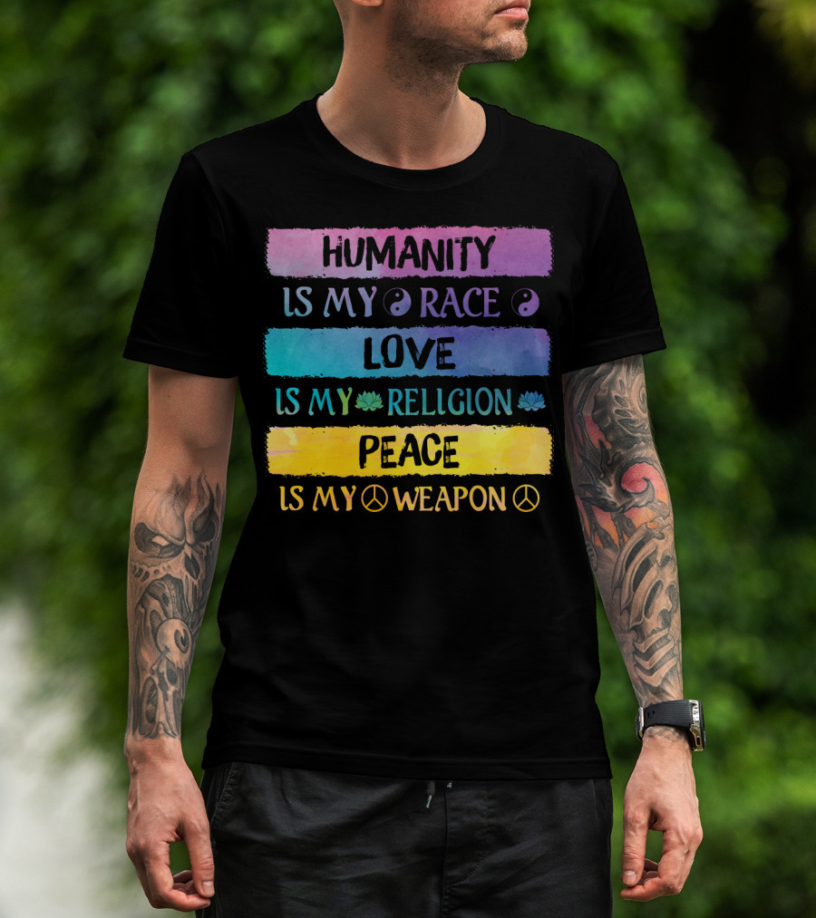 Humanity Is My Race Love Is My Religion Peace Is My Weapon T-Shirt