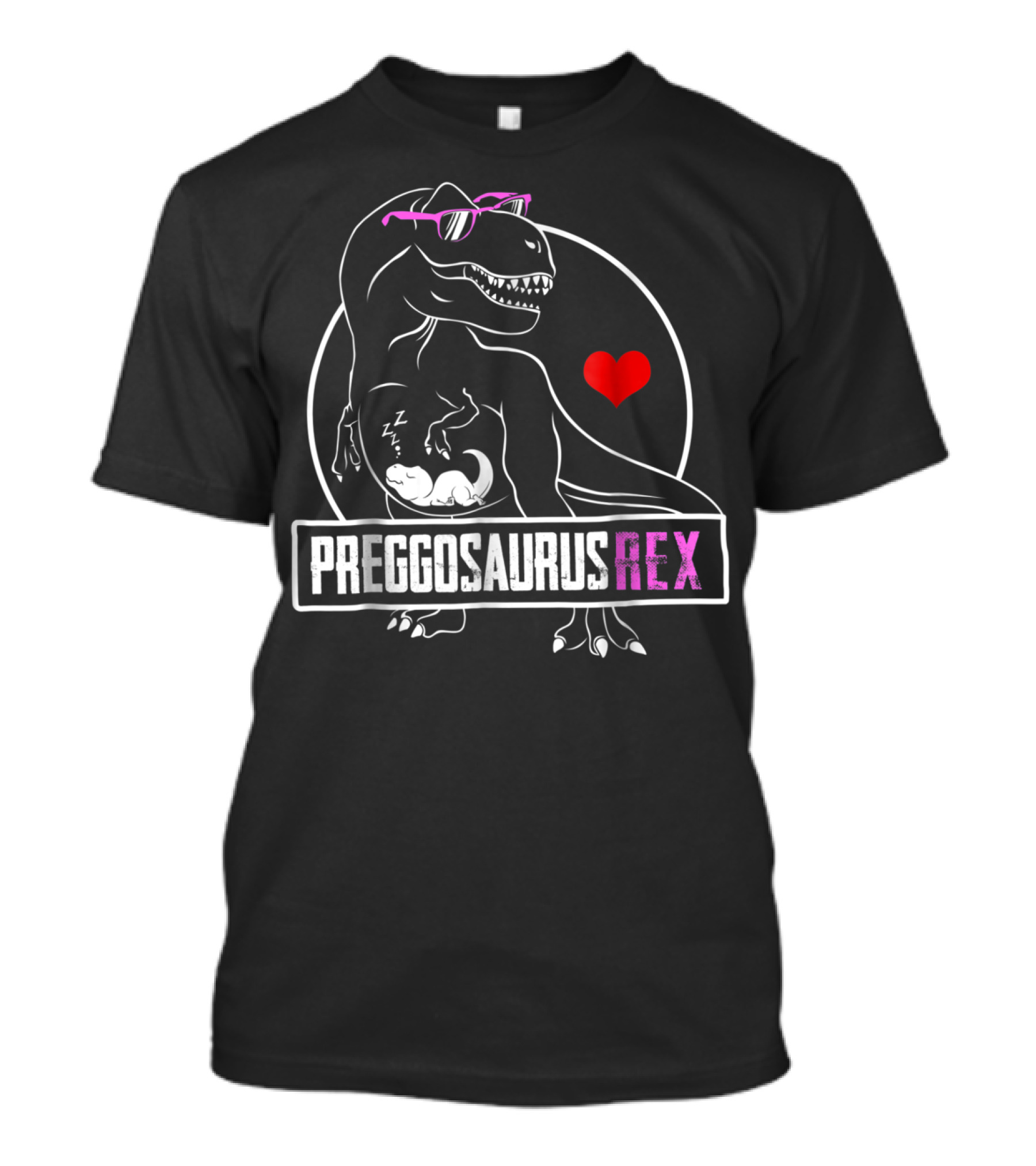 The Pregosaurus Rex Funny Dinosaur Pregnancy Heart Sunglasses T-shirt is designed for everyday wear and a consistent fit. Fabric is pre-shrunk ring-spun cotton with durable stitching. See the size chart below for exact measurements.