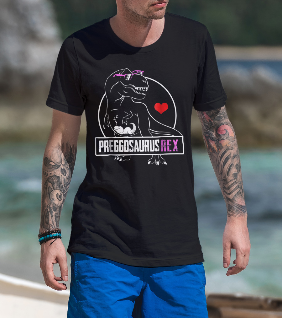Pregosaurus Rex Funny Dinosaur Pregnancy Heart Sunglasses T-Shirt