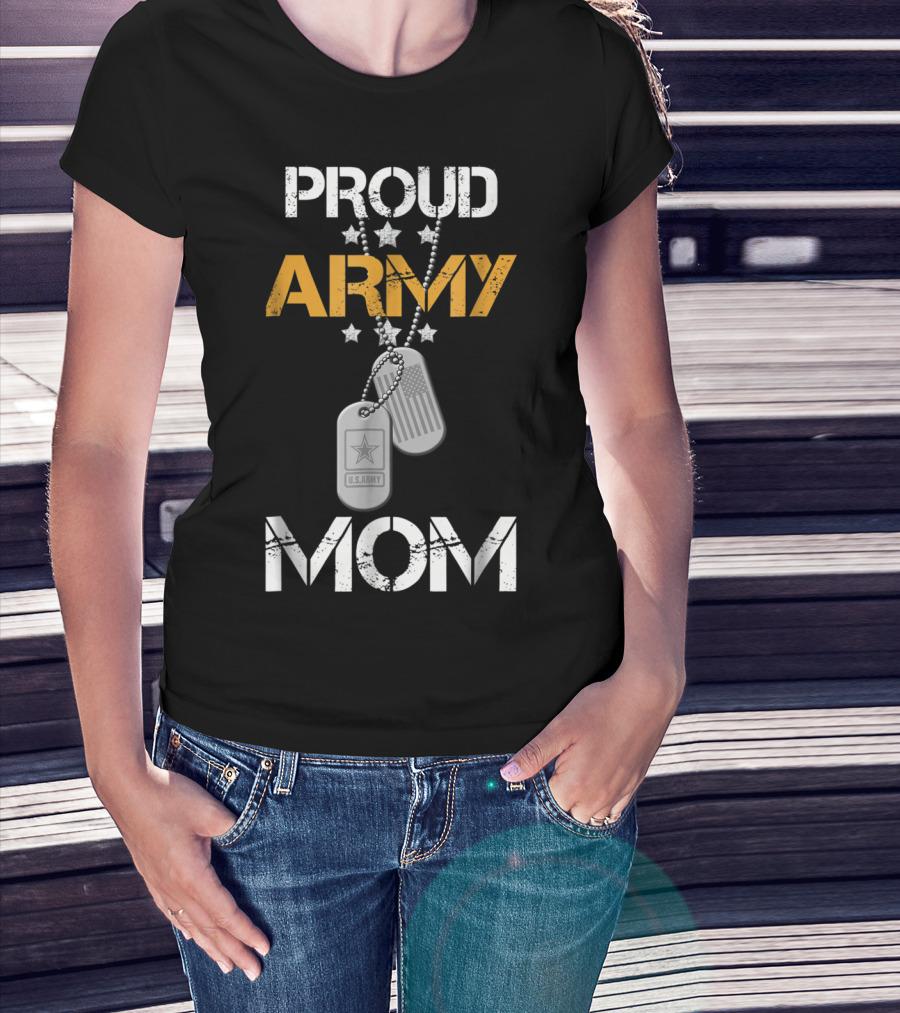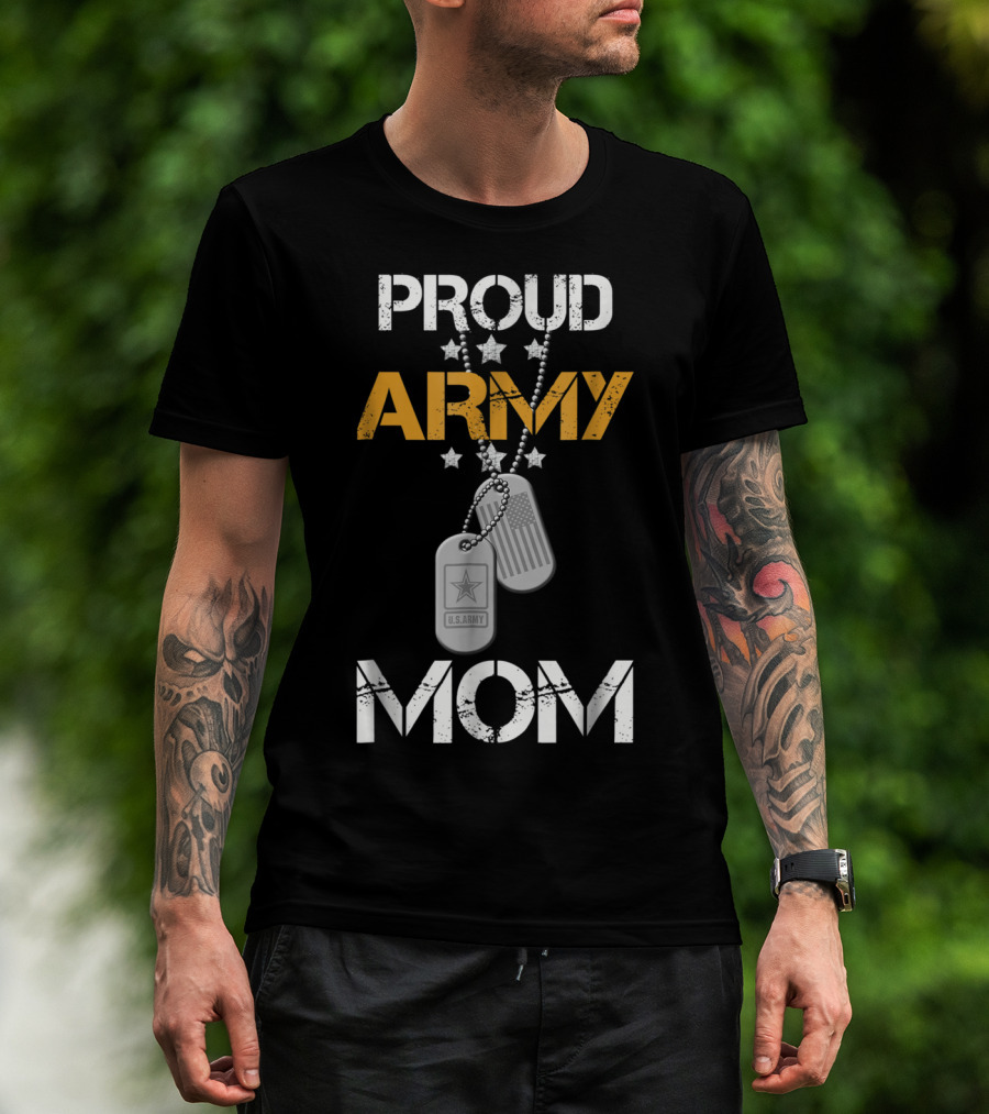 Proud Army Mom U.S. Army Stars Dog Tags T-Shirt