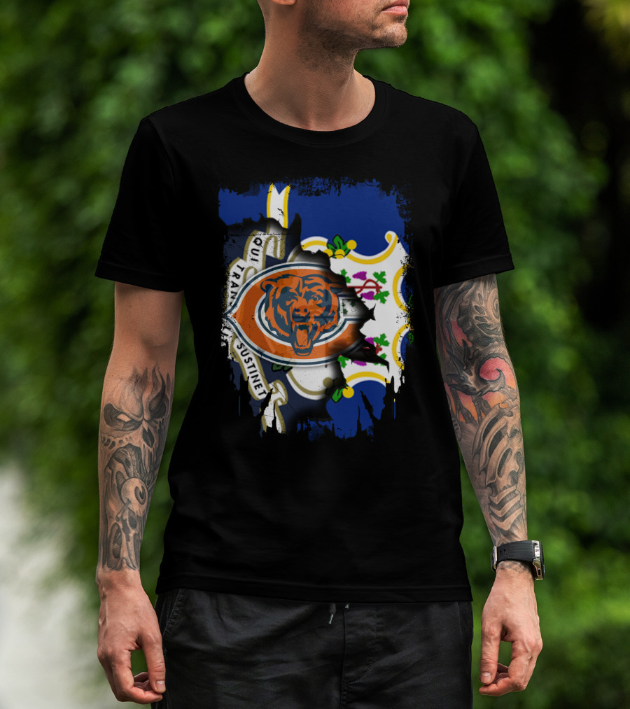 Connecticut State Flag Blended With Chicago Bears T-Shirt
