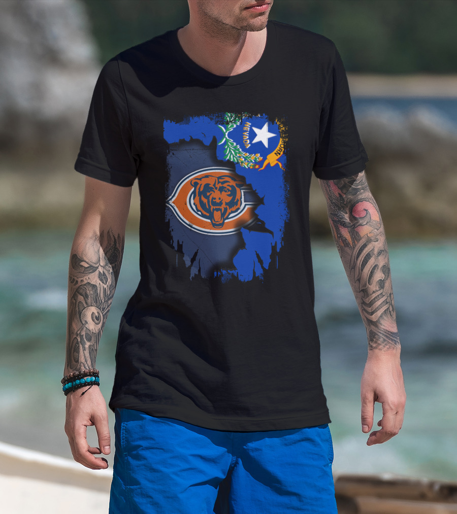 The Nevada State Flag with Chicago Bears T-shirt is designed for everyday wear and a consistent fit. Fabric is pre-shrunk ring-spun cotton with durable stitching. See the size chart below for exact measurements.