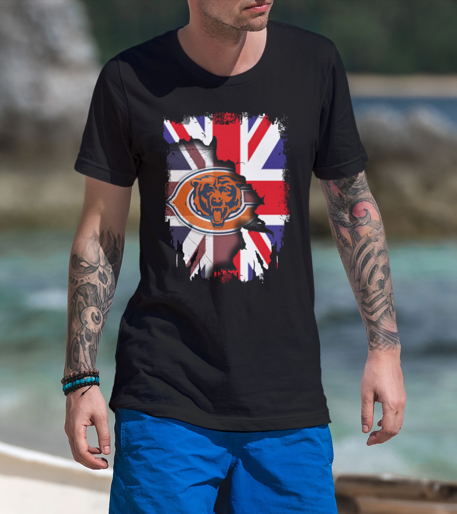 United Kingdom Flag With Chicago Bears Logo Overlap T-Shirt