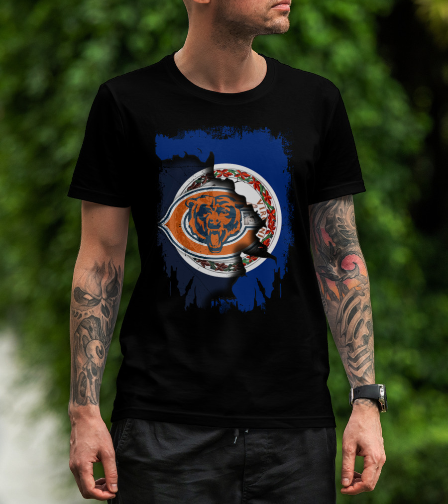 Virginia State Meets Chicago Bears Emblem In Torn Detail T-Shirt