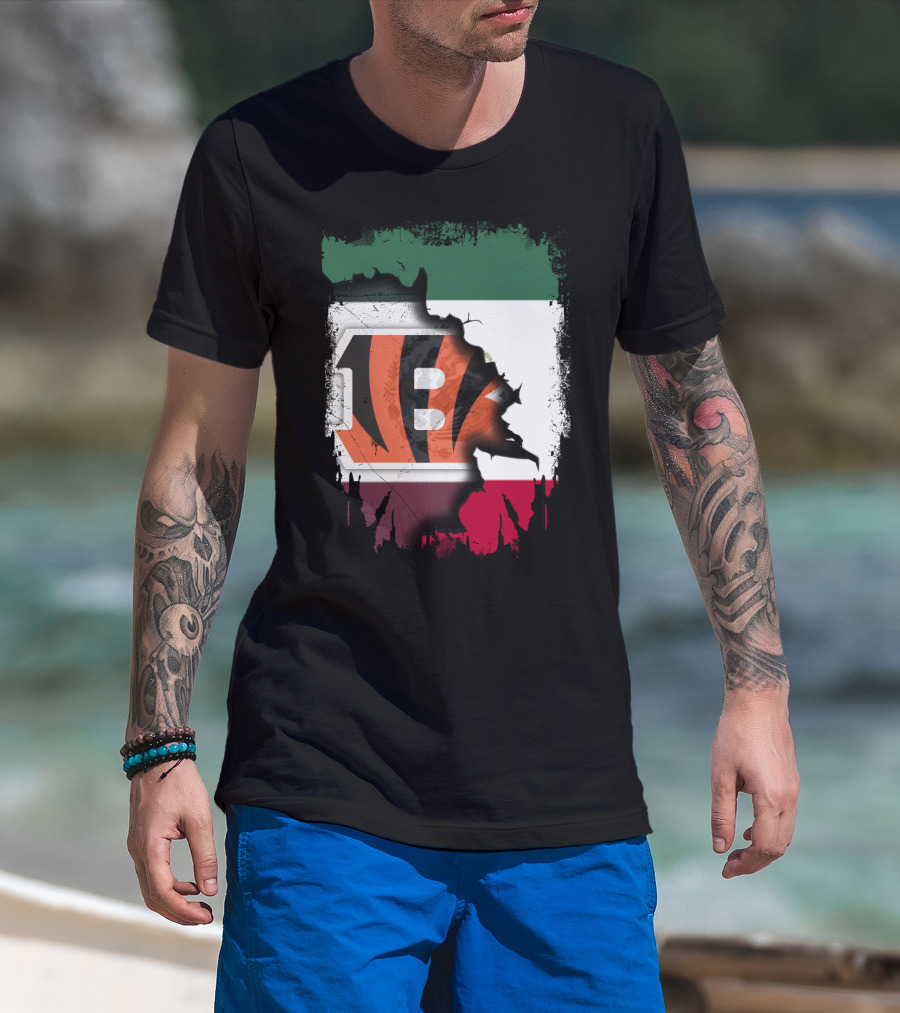 Bengals Logo Over Mexican Flag Together T-Shirt
