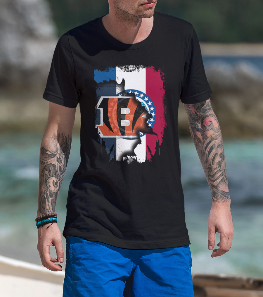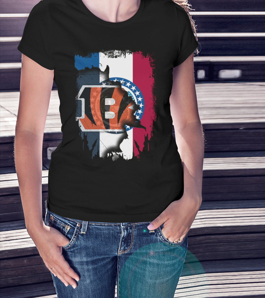 Missouri Flag With Cincinnati Bengals Logo Fusion T-Shirt
