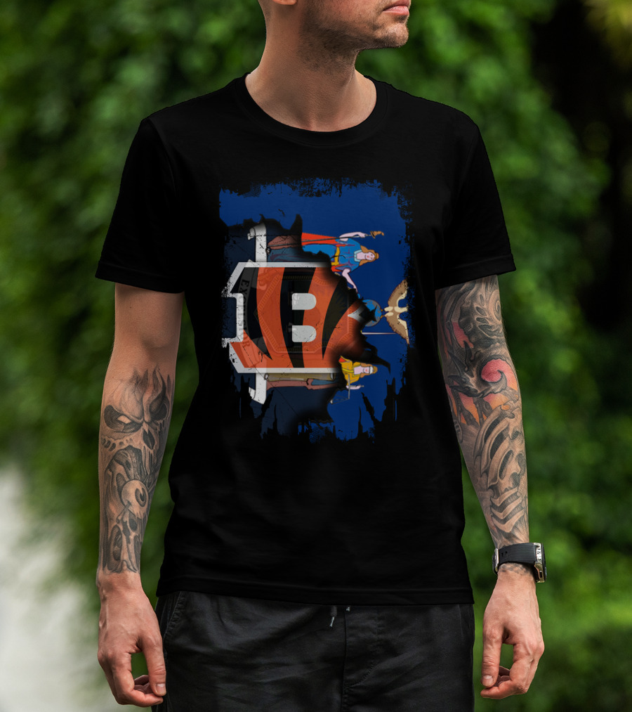 Together New York Bengals Helmet Comic Heroes Statue Of Liberty T-Shirt