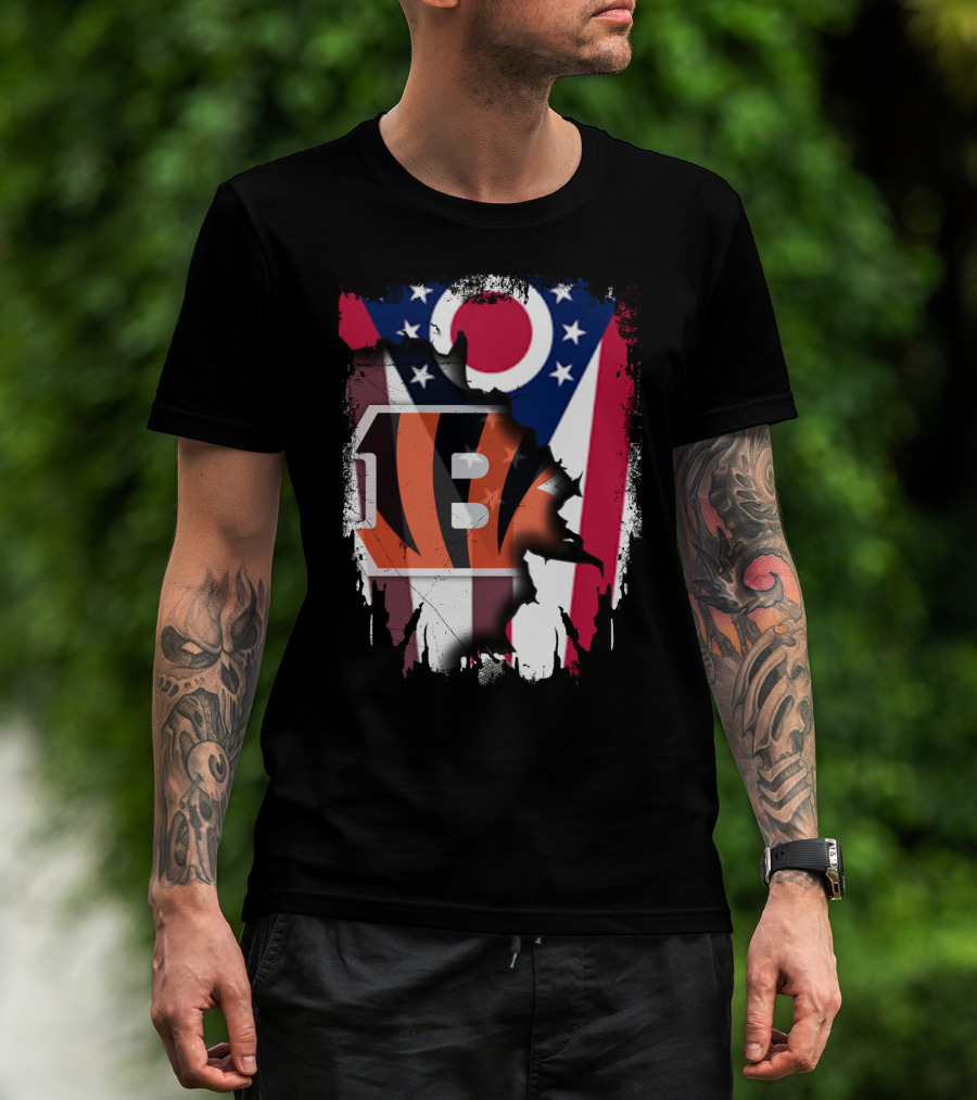 Together Ohio With Bengals Stripes And Ohio Flag Fusion T-Shirt