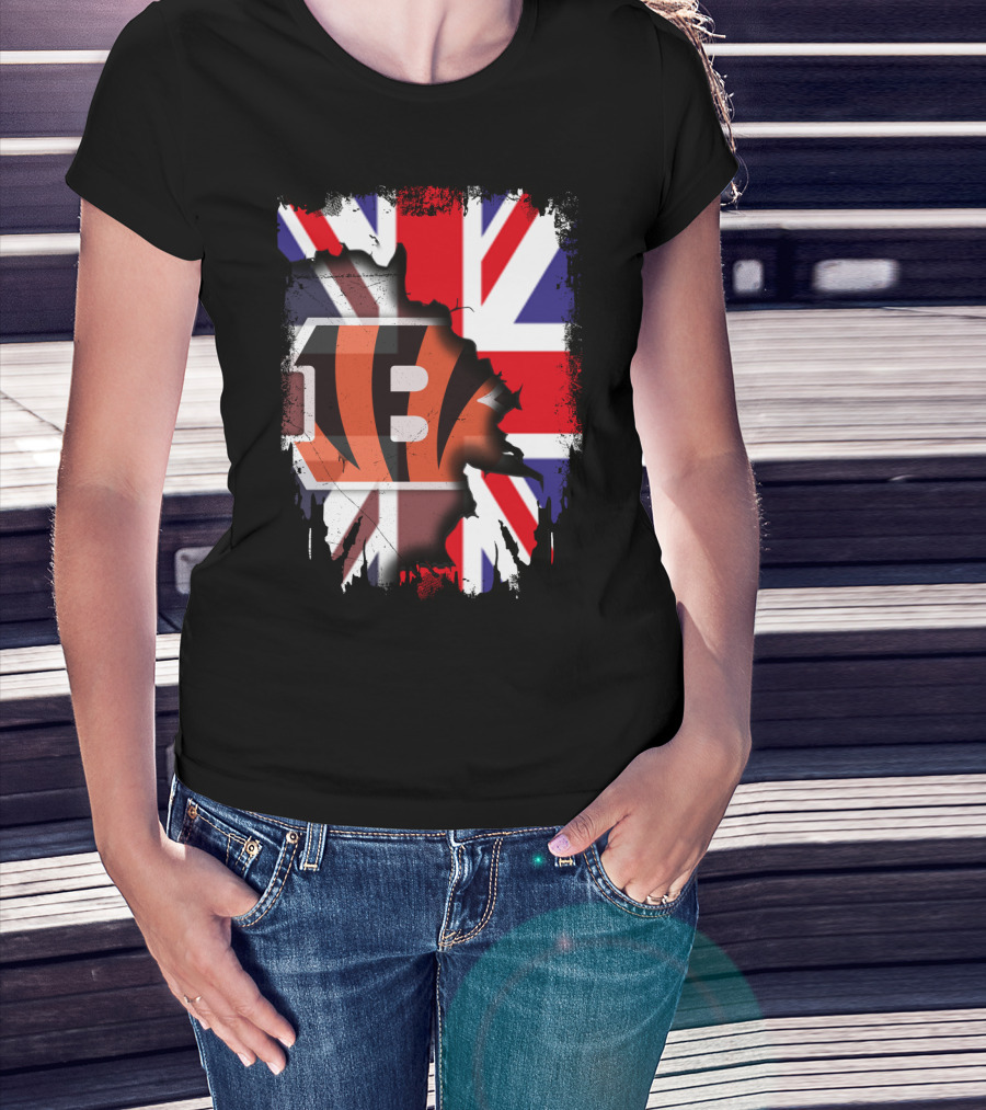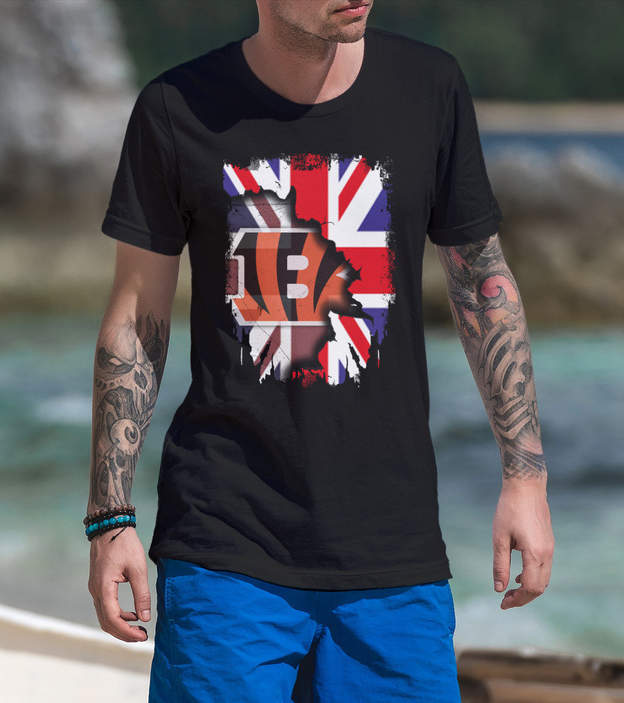 United Kingdom Flag With Cincinnati Bengals T-Shirt