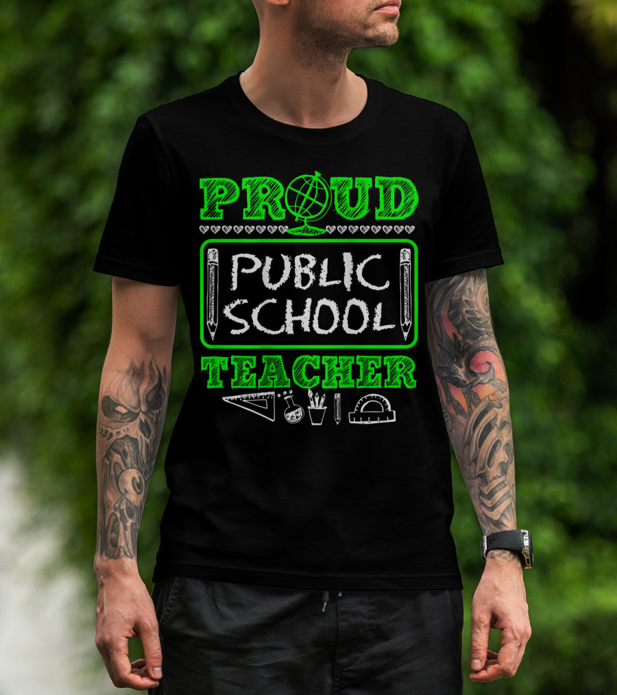Proud Public School Teacher Educational Icons Heart Accents T-Shirt