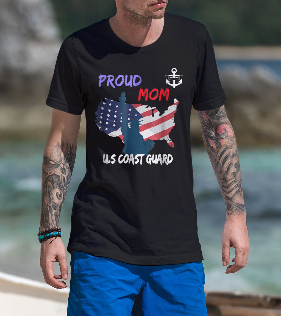 Proud Mom U.S. Coast Guard Anchor Flag Map T-Shirt