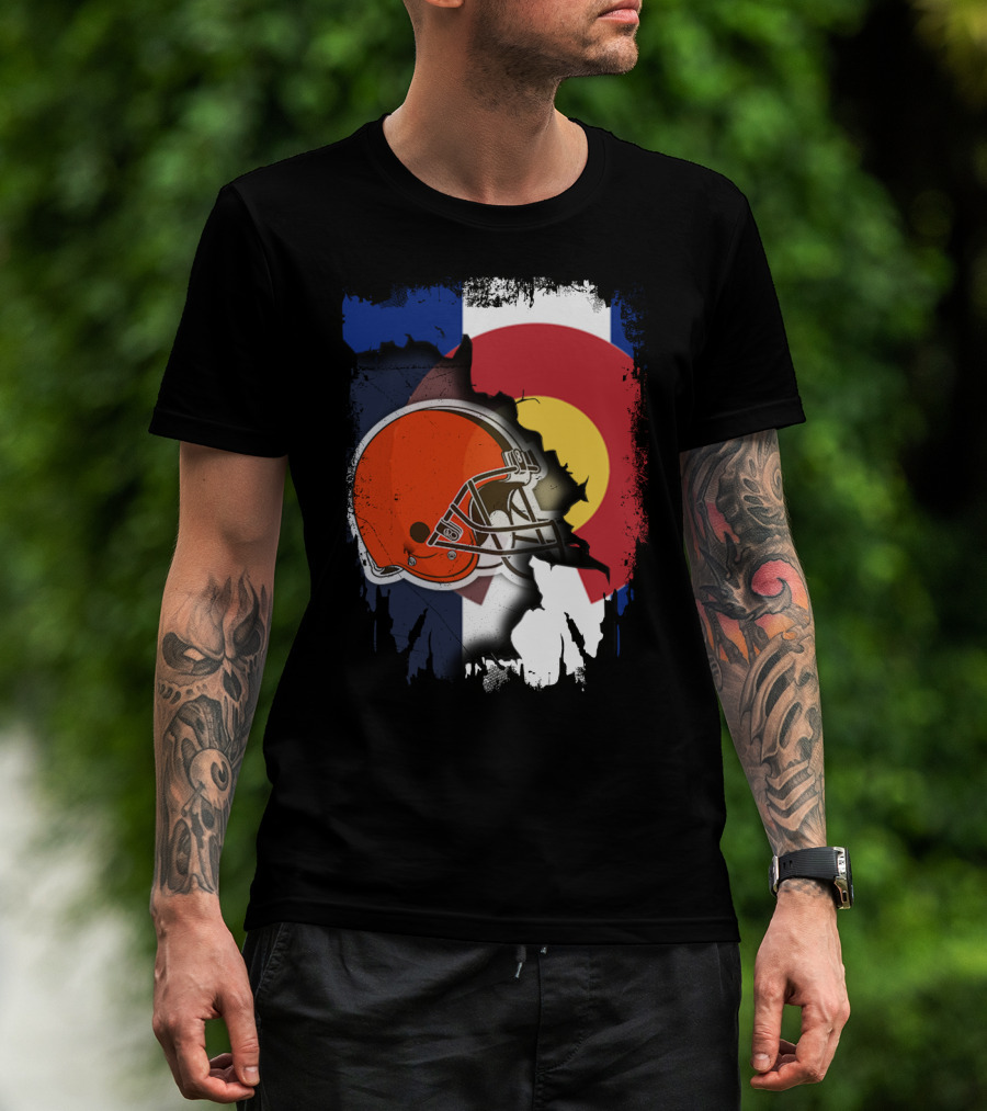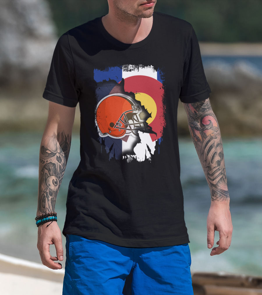 Together Colorado Cleveland Browns Helmet Flag Fusion T-Shirt